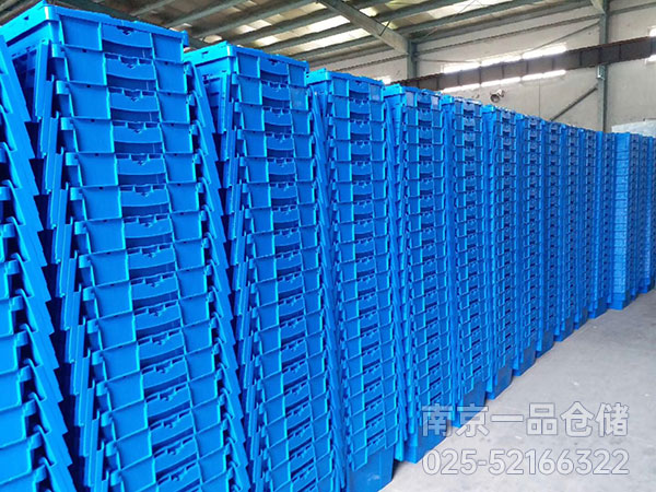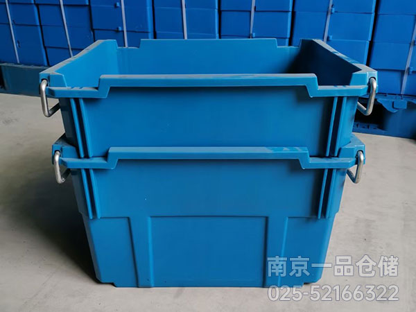 1. 物流箱為可插式、帶連體外翻箱蓋;把手搬運舒適,空箱套入時,把手在外。