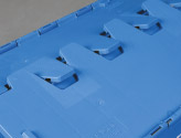 13. 箱體短側面兩邊靠頂部位置設計有標簽槽,可插標簽,方便管理。同時特別加強的堆垛點,大大提高了空箱套入的堆垛能力。